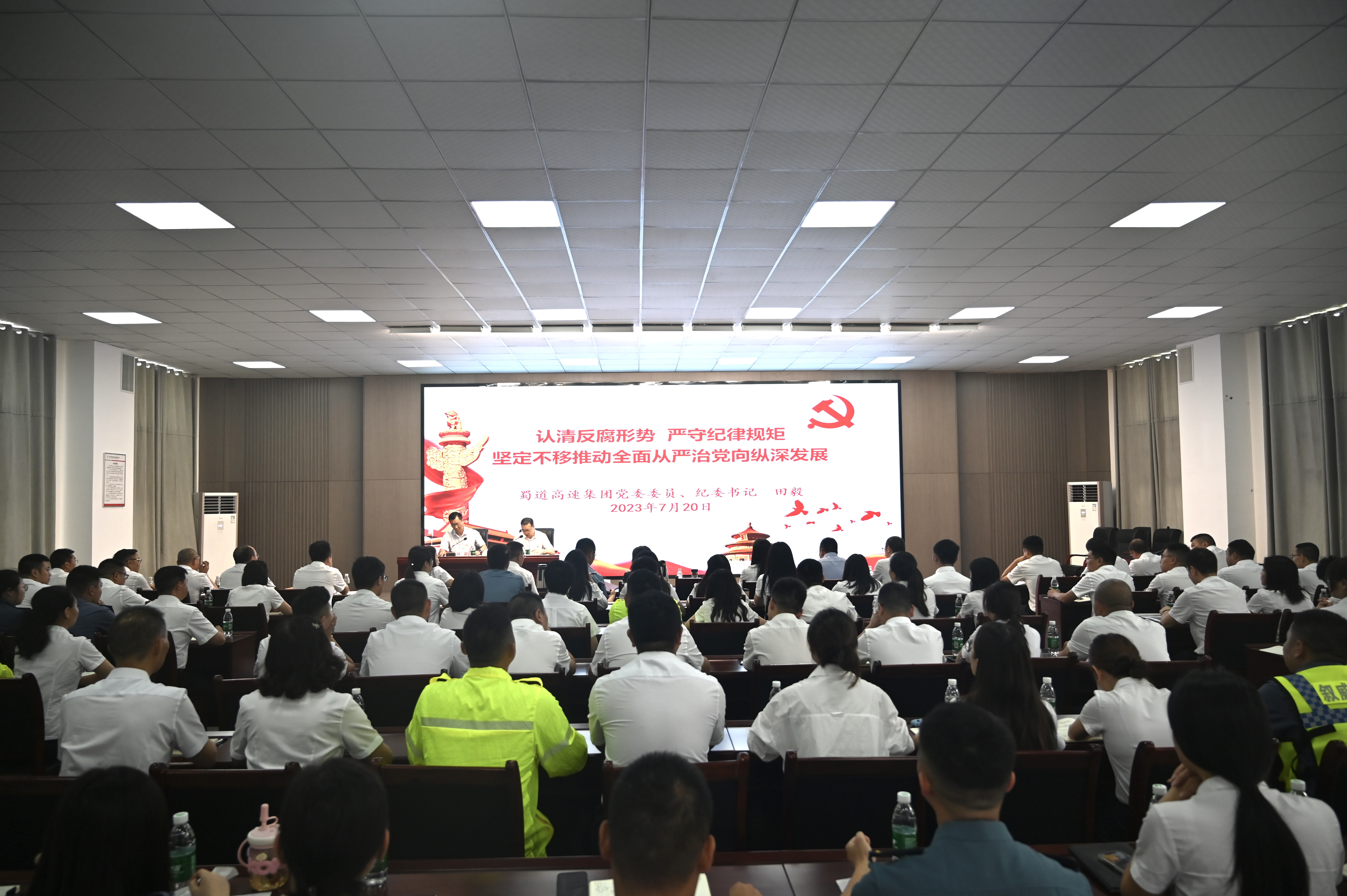 按照蜀道高速集團黨委主題教育工作安排,7月20日上午,蜀道高速集團黨委委員、紀委書記田毅以《認清反腐形勢 嚴守紀律規矩 堅定不移推動全面從嚴治黨向縱深發展》為題,為敘古敘威川黔公司黨員干部職工講授專題黨課。